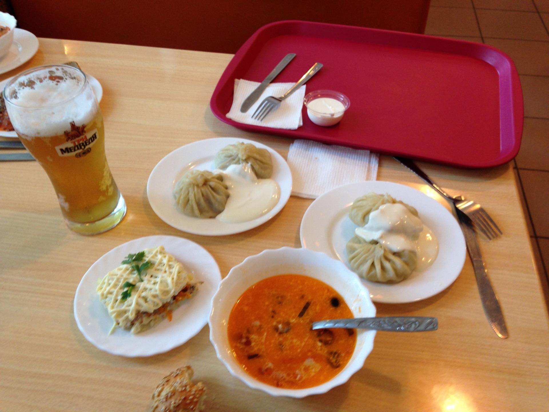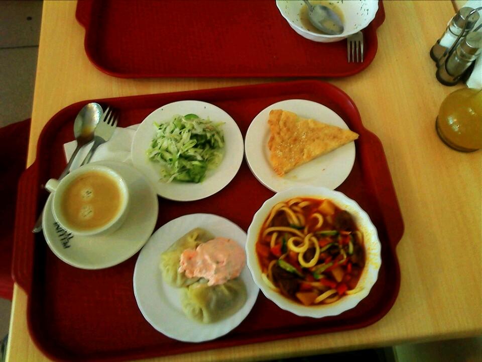 Лагман, манты, салат, кофе и сочник. 186 р