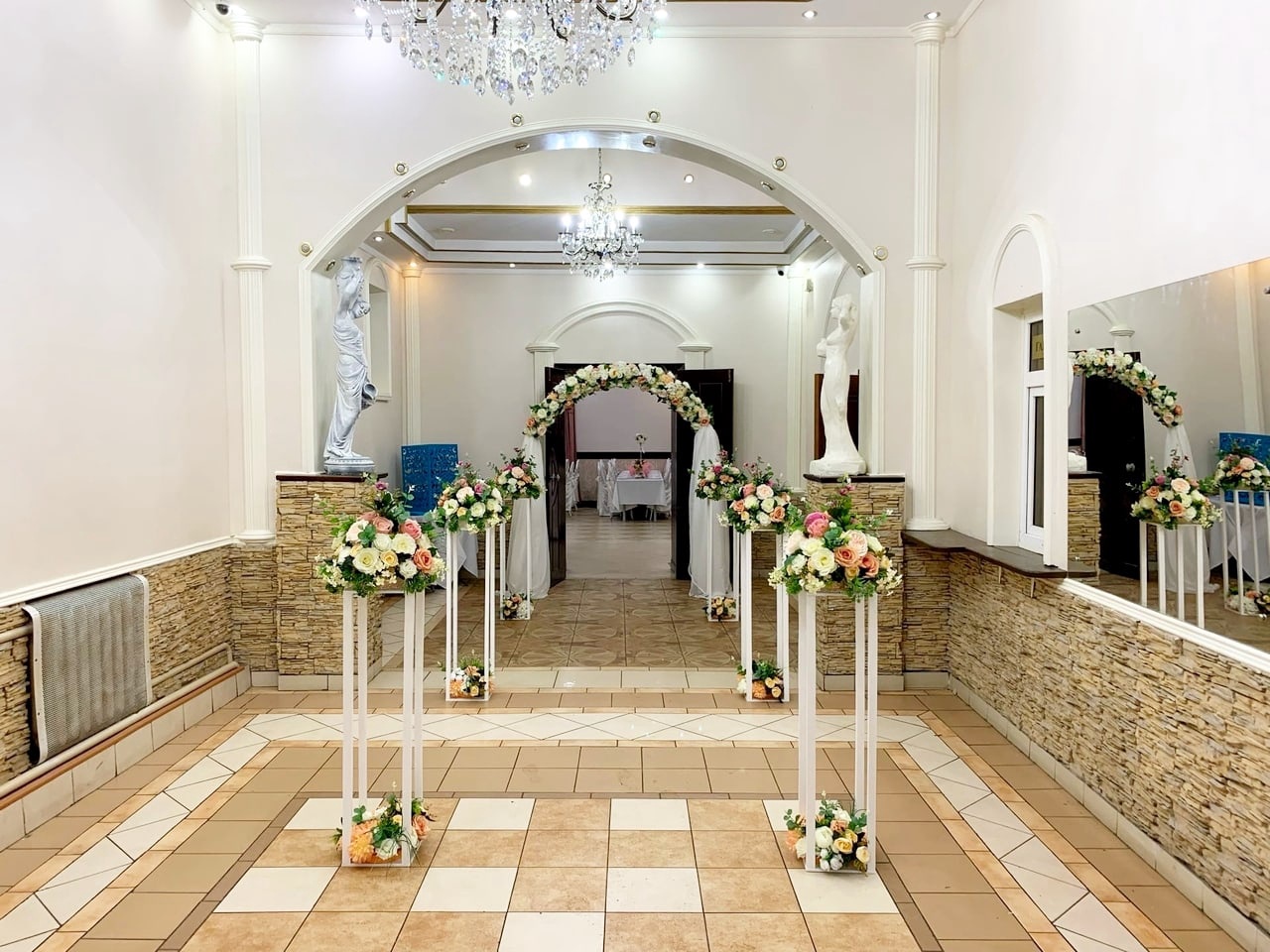 Авторский подход нашей команды позволяет организовать свадьбу абсолютно любого формата, под любой бюджет и пожелания. Уникальность нашего зала, состоит ещё и в том, что мы работаем только с лучшими поварами и официантами, администраторы не упускают ни одну деталь при подготовке торжества.