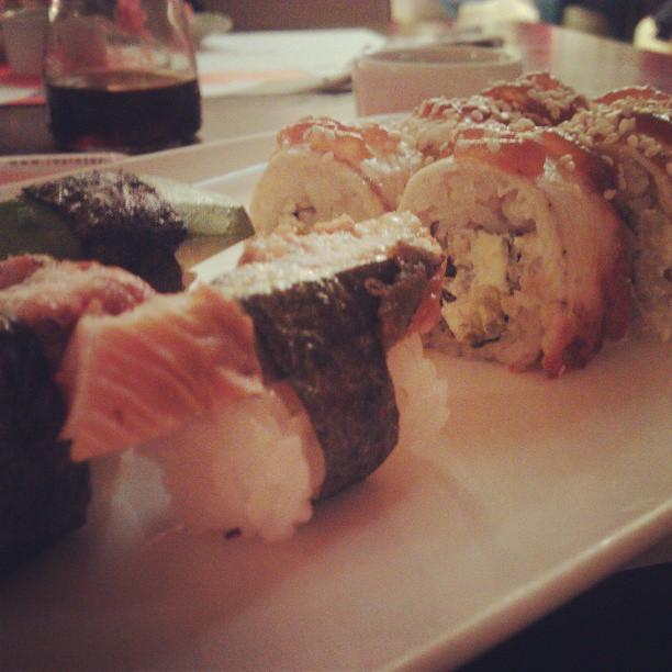 Том Ям совсем никакой стал- жидкий и не насыщенный...Рыба в роллах разваливается. Однозначно становится хуже. Хотя обслужили вежливо и быстро.
